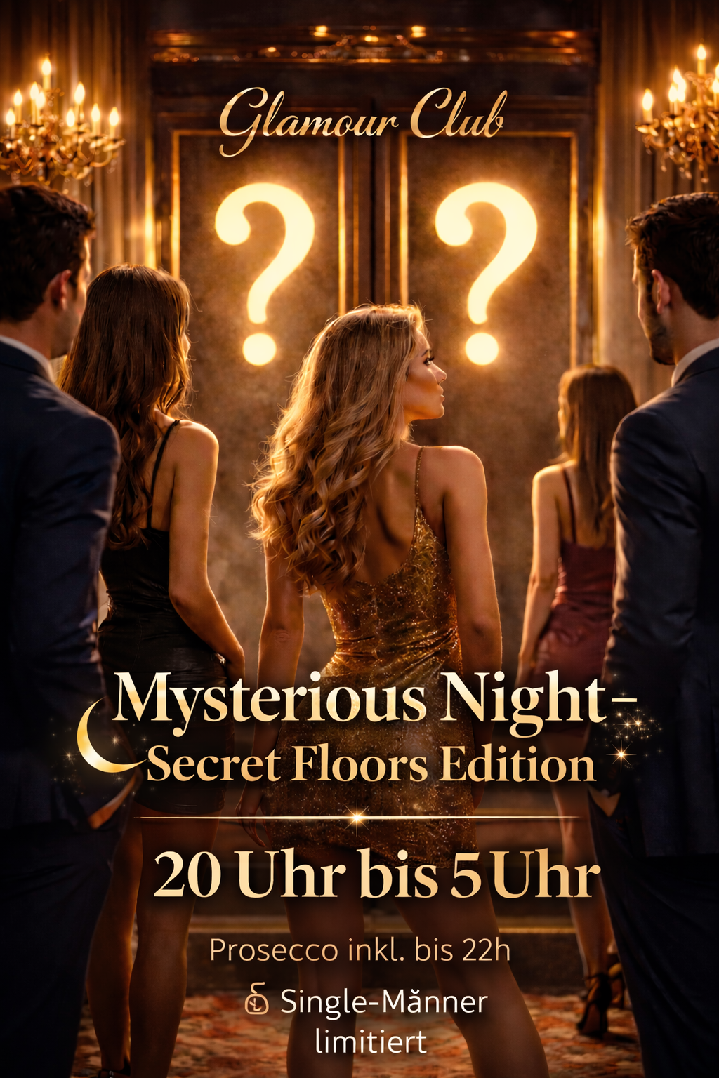 🚪 Motto des Abends: Was verbirgt sich hinter der Tür? Nicht jede Ebene ist von Beginn an zugänglich. Nicht jedes Erlebnis zeigt sich sofort. Zu Beginn bleiben zwei Floors bewusst geschlossen: ⬆️ Der Mittelstock ⬇️ Das Untergeschoss Die Türen sind sichtbar. Die Neugier ist spürbar. Doch der Zugang bleibt vorerst verborgen. 🥂 Der Abend beginnt exklusiv in der Lounge. Alle Gäste im selben Raum. Eine konzentrierte, elegante Atmosphäre. 💡 Gedämpftes Licht. 🎧 Stilvoller Club-Sound. 👀 Erwartungsvolle Blicke. ⚡ Eine Energie, die sich langsam auflädt. Man weiß: Hinter diesen Türen wartet mehr. ⸻ ⏳✨ 22:30 Uhr – Der Opening Moment ✨⏳ 🔊 Countdown. 💡 Lichtwechsel. 🎶 Der Sound baut Spannung auf. 🔓 Die Secret Floors öffnen sich. Neue Räume. Neue Dynamik. Neue Intensität. Die Nacht erweitert sich. Das Geheimnis entfaltet sich. ⸻ ✨💎 Highlights des Abends 💎✨ 🍾 Prosecco gratis für Frauen & Paare bis 22:00 Uhr 🥂 Welcome Drink für Frauen & Paare 🎧 Live DJ mit stilvollem Club-Sound 🔐 Exklusiver Lounge-Start ⏳ Inszenierte Öffnung der geschlossenen Ebenen 💎 Hochwertige, mysteriöse Atmosphäre 🔥 Spannung bis zum entscheidenden Moment ⸻ 💋 Gästekonzept 💑 Paare herzlich willkommen 💃 Frauen bevorzugt 🚹 Single-Männer streng limitiert ✔ Teilnahme nur mit Bestätigung ✔ Gepflegtes & respektvolles Auftreten Voraussetzung 🎯 Ziel: ausgewählte Gäste Ausgewogen. Elegant. Geheimnisvoll. ⸻ 🌙✨ Mysterious Night – Secret Floors Edition ✨🌙 🚪 Die Türen öffnen sich. Das Geheimnis entfaltet sich.